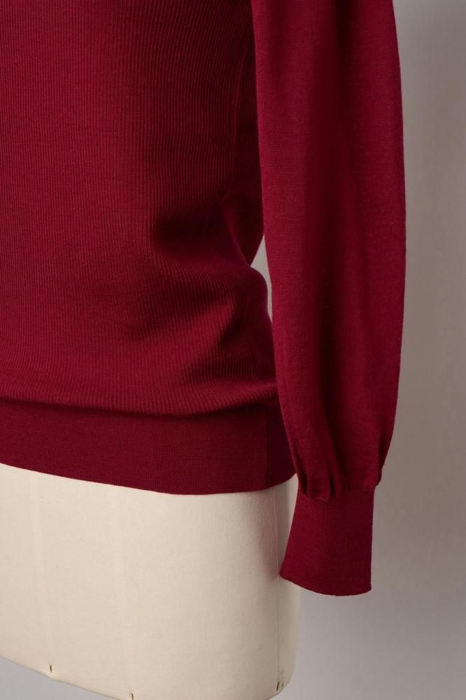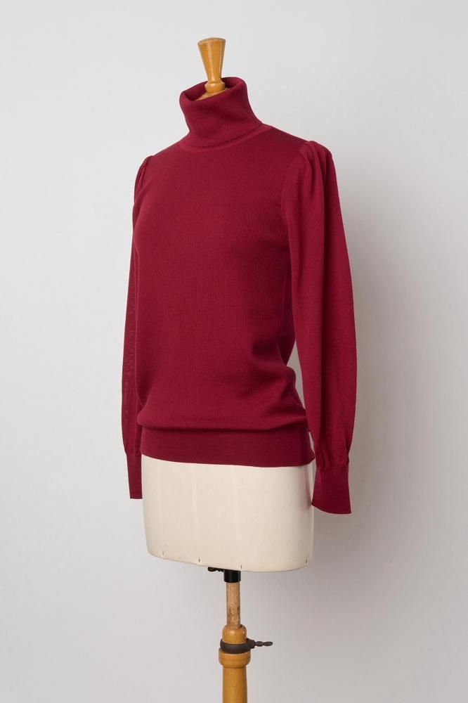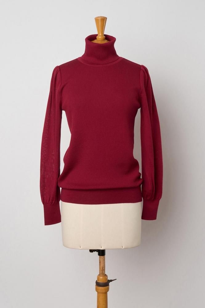 SINMEの人気定番リブタートルネックセーター。やや高いネック、パフスリーブ、伸縮性のあるウール生地。着心地を考慮してボディとスリーブで編み目のテンションを変えているのが特徴です。