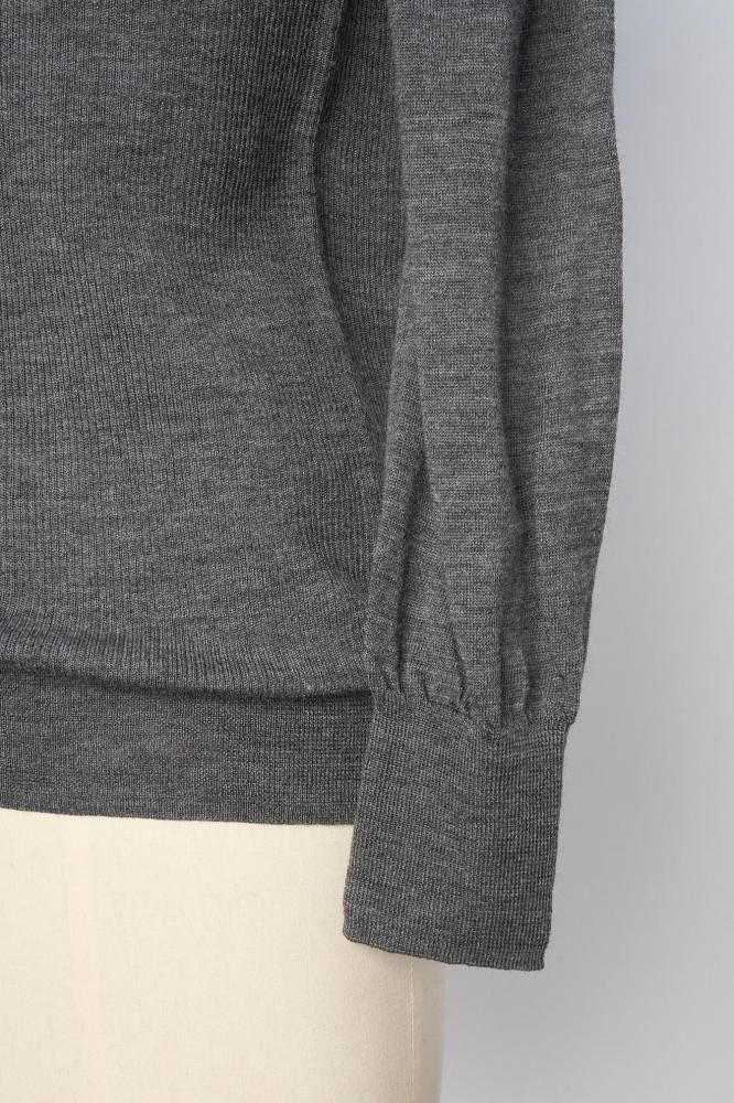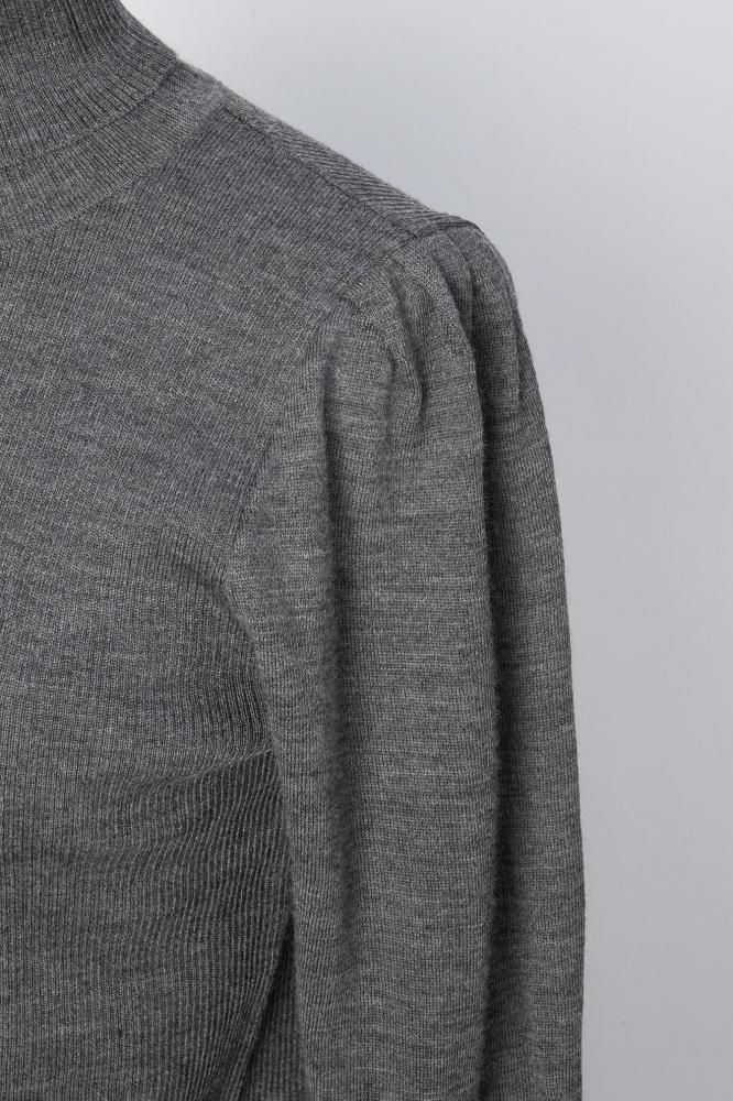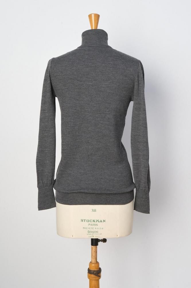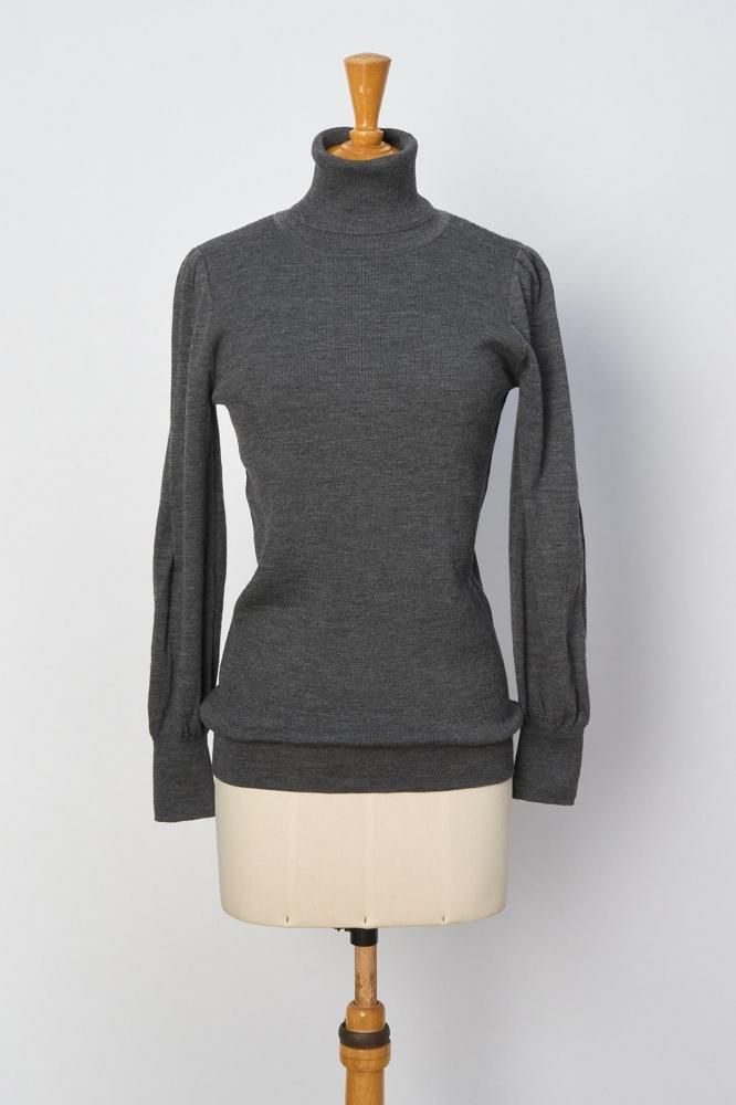 SINMEの人気定番リブタートルネックセーター。やや高いネック、パフスリーブ、伸縮性のあるウール生地。着心地を考慮してボディとスリーブで編み目のテンションを変えているのが特徴です。