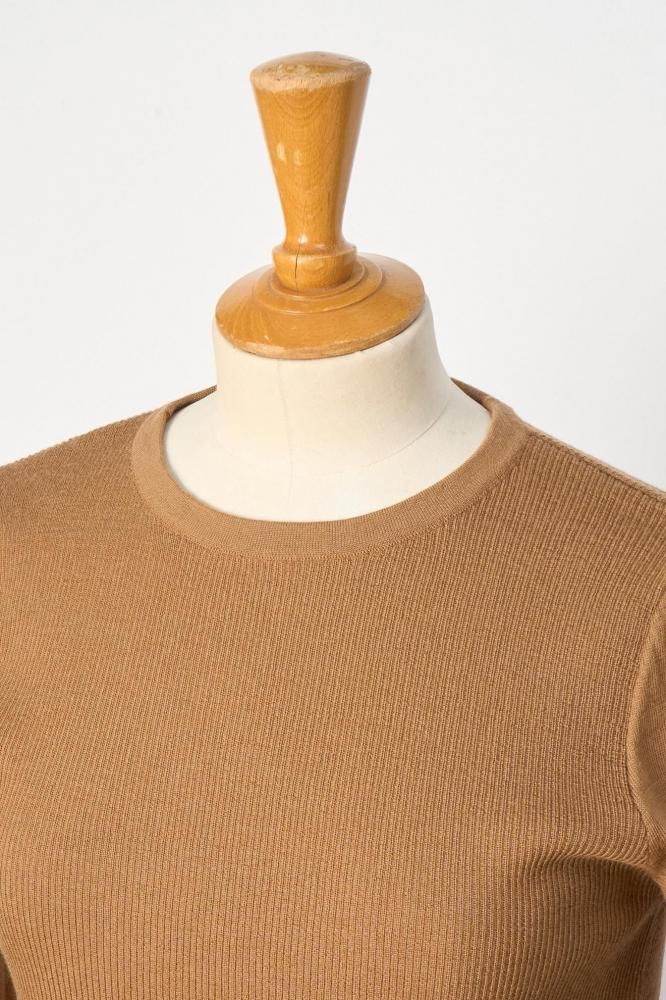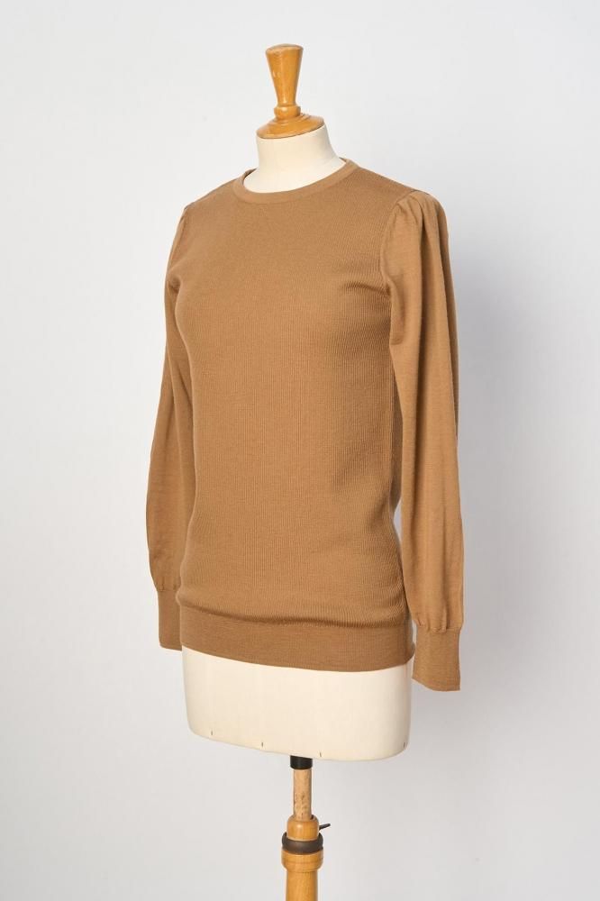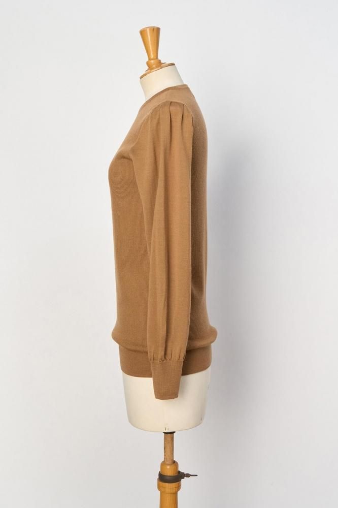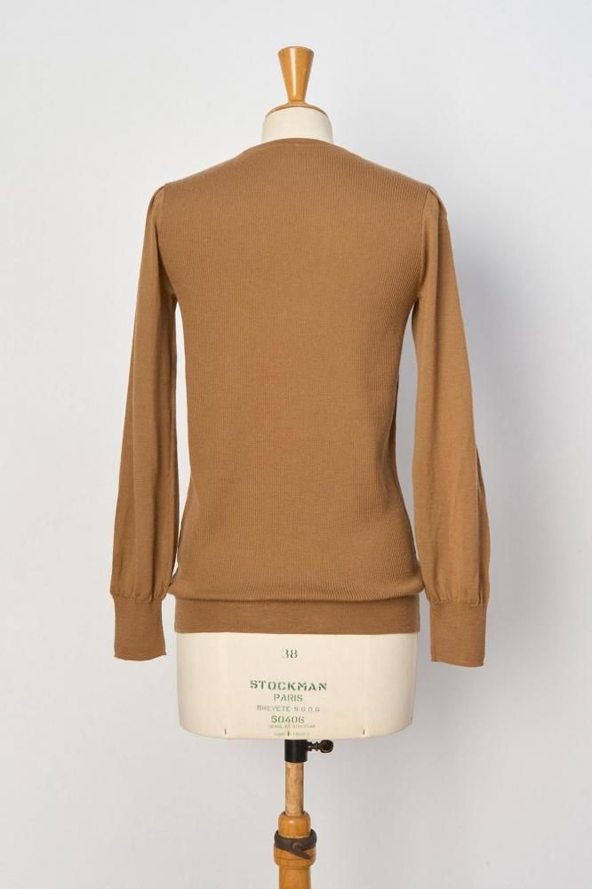 オーセンティックなクルーネックのセーター。細くて繊細なネック周りが特徴でインナーを加えても素敵。ベーシックなスタイルを好むならこれです。