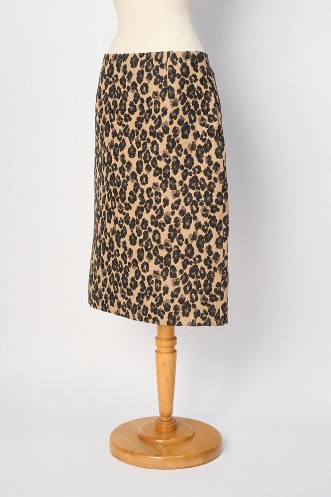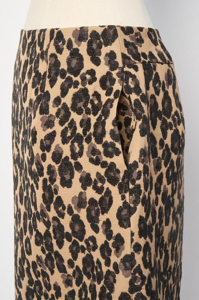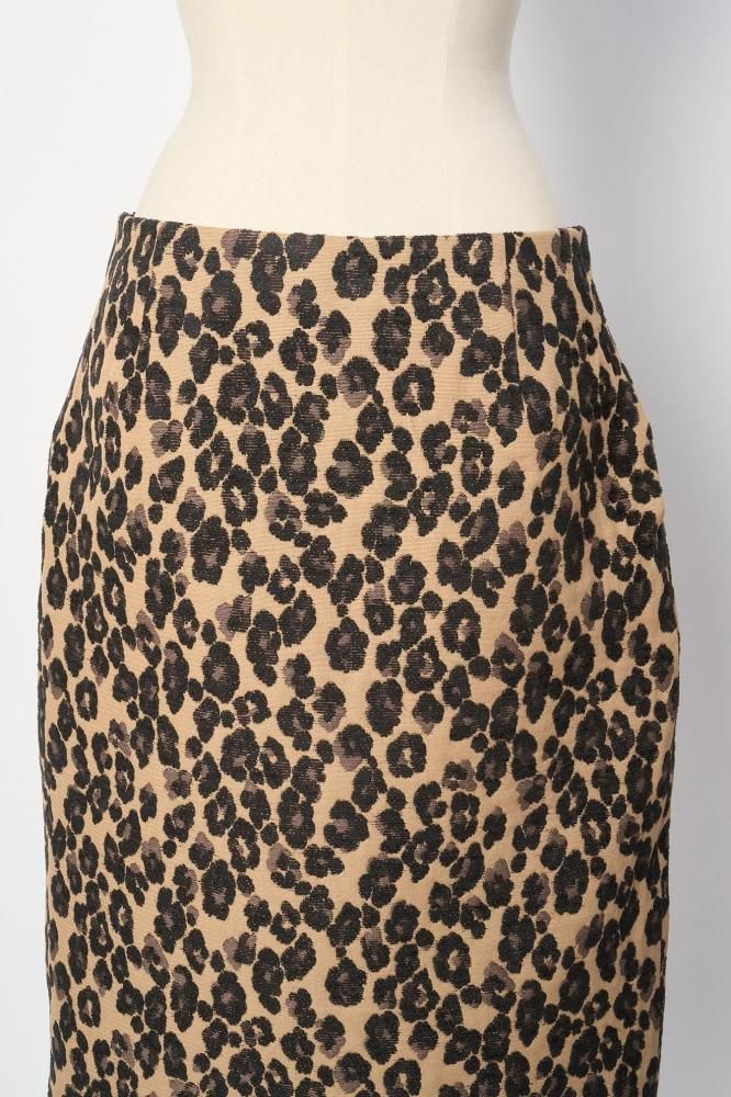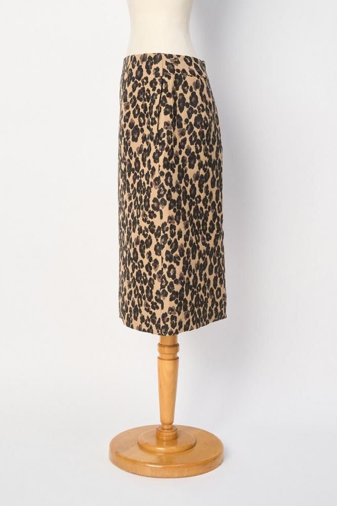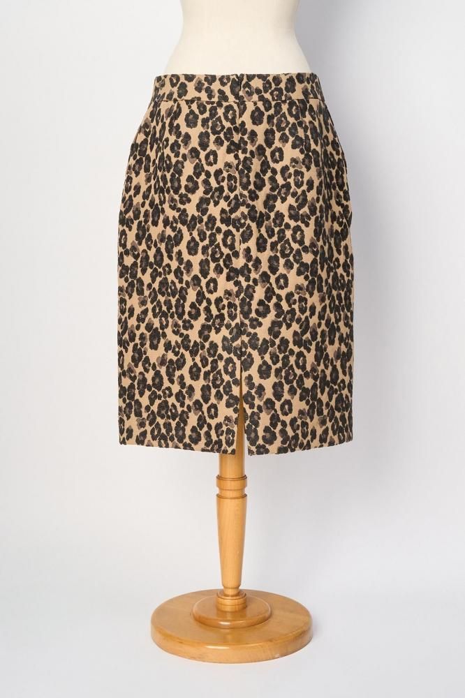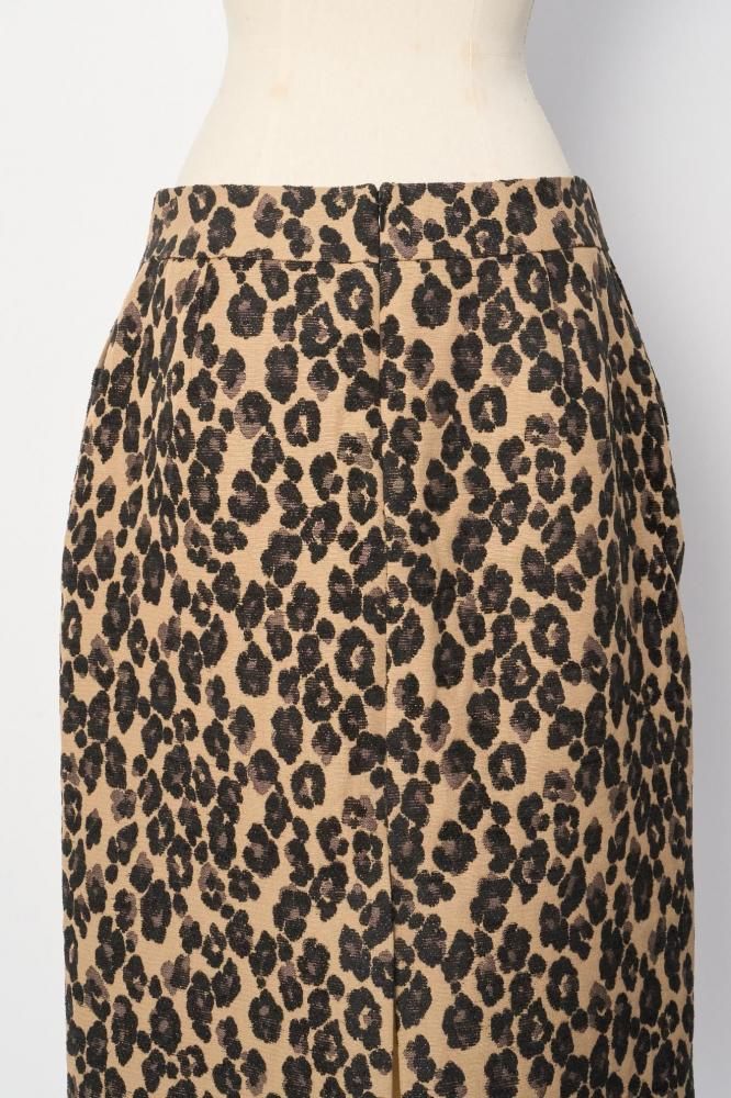 花柄にも見えるレオパードの織り柄生地を使ったスカート。タイトめのシルエットでバックにスリットが入っています。オンでもオフでも活躍してくれます。両ポケット、総裏がついています。