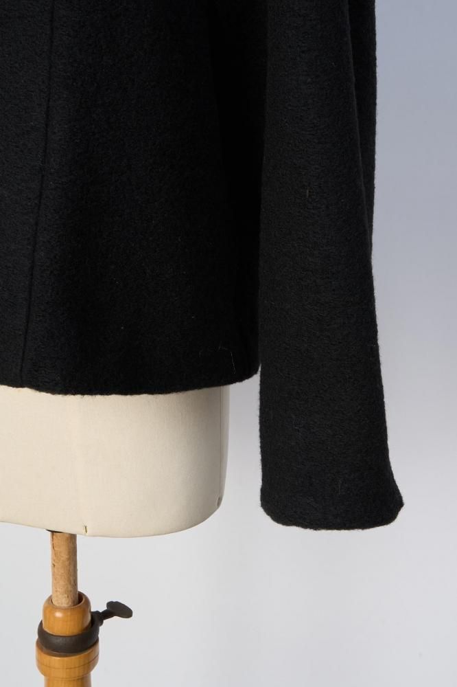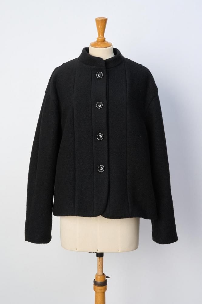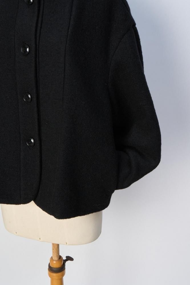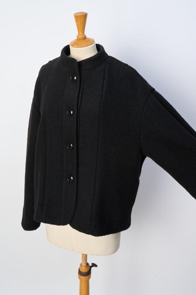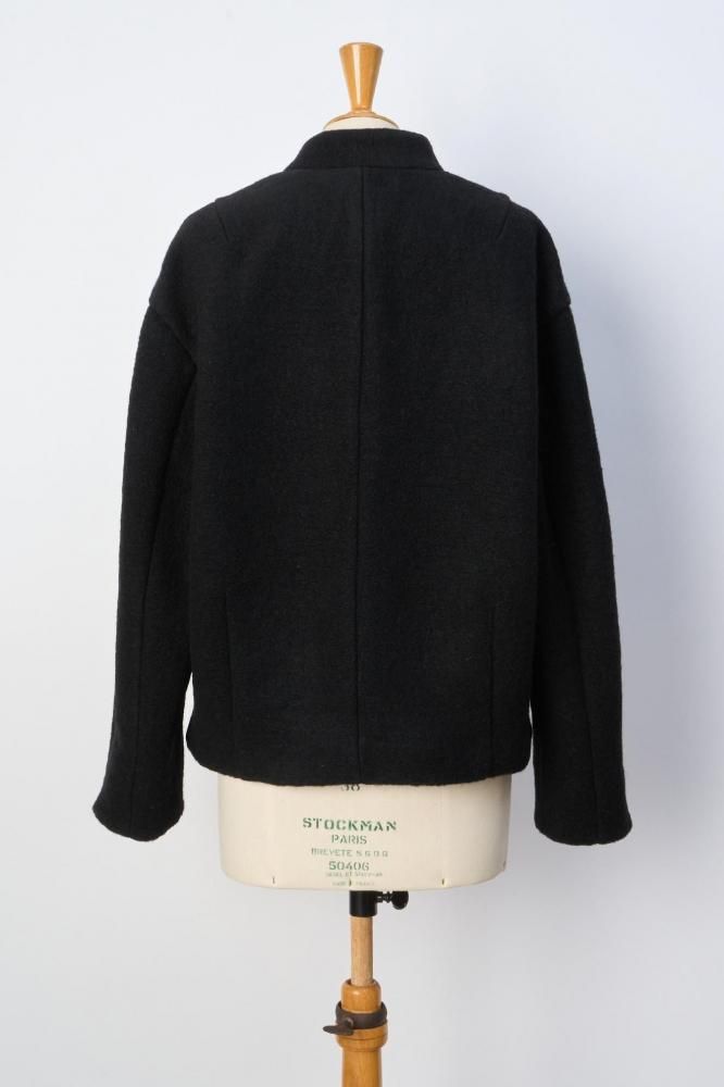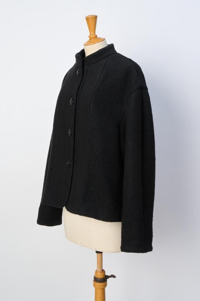 シェットランドウールのジャケット。レイヤリングに適した牧歌的な雰囲気が冬気分を刺激するアイテム。レオバードジャケットと同じシルエットでソリッド版という感じ。