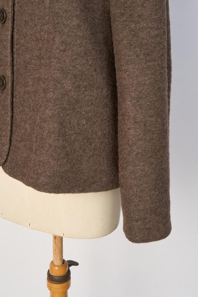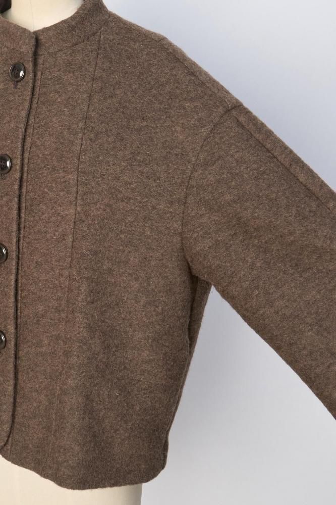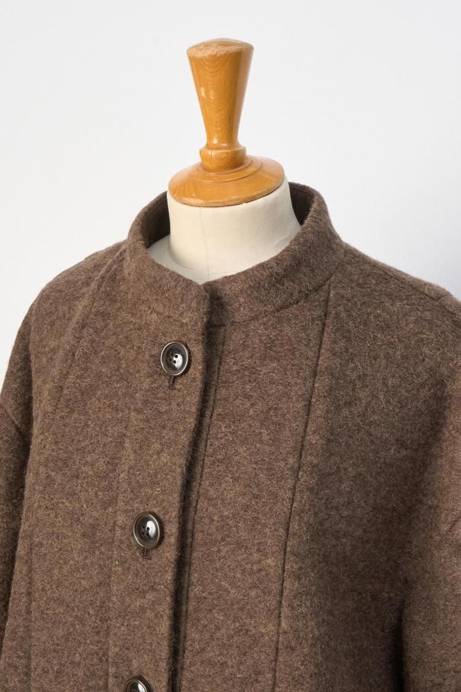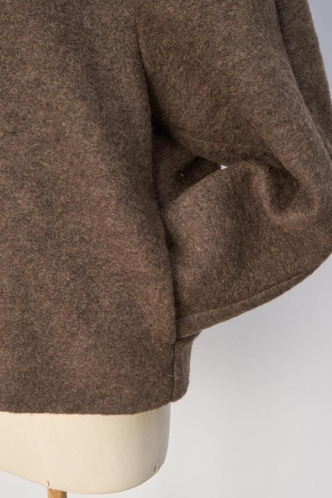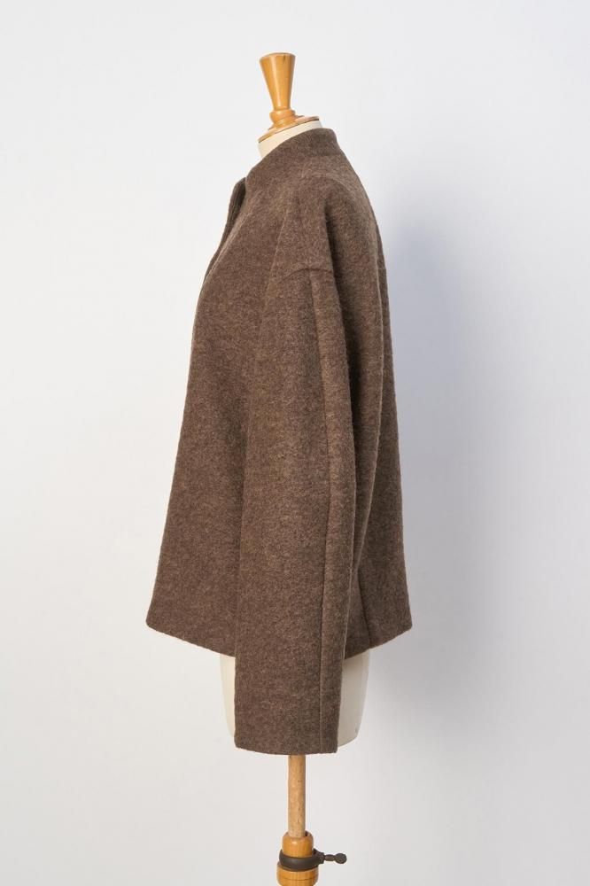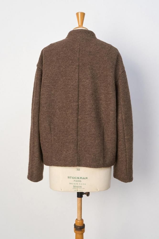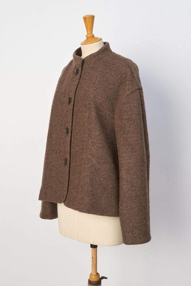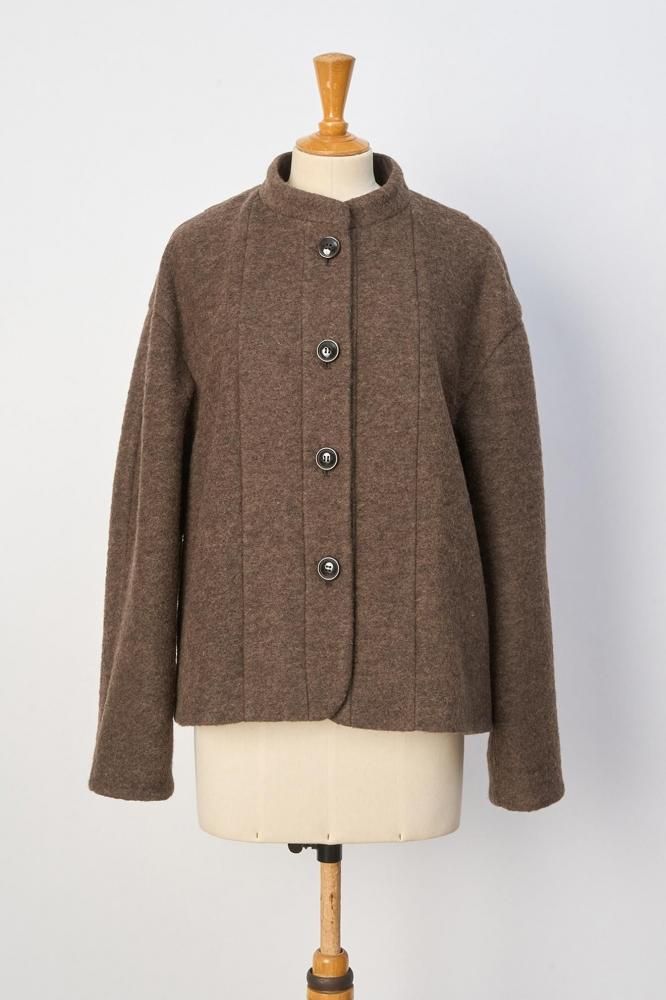 シェットランドウールのジャケット。レイヤリングに適した牧歌的な雰囲気が冬気分を刺激するアイテム。レオバードジャケットと同じシルエットでソリッド版という感じ。