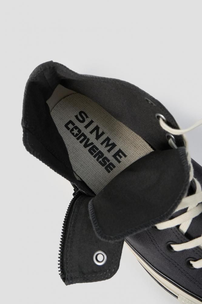 その一つがこのSINMEとCONVERSEの2ndコラボレーション、コンバースのオールスターです。1ndコラボはスエード素材のハイカットでしたが、今回はコーディネートを選ばないダークグレーのキャンバス素材。ハイカットと、お客様からのリクエストにお応えしてローカットの2種類をご用意しました。